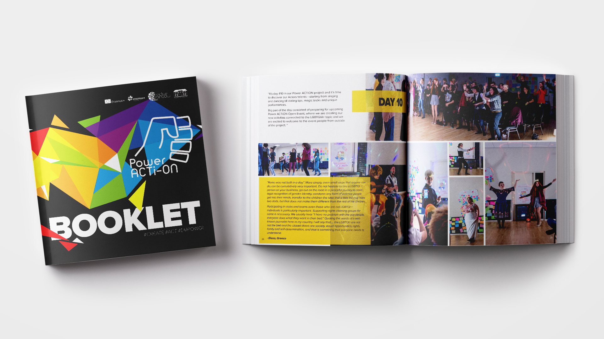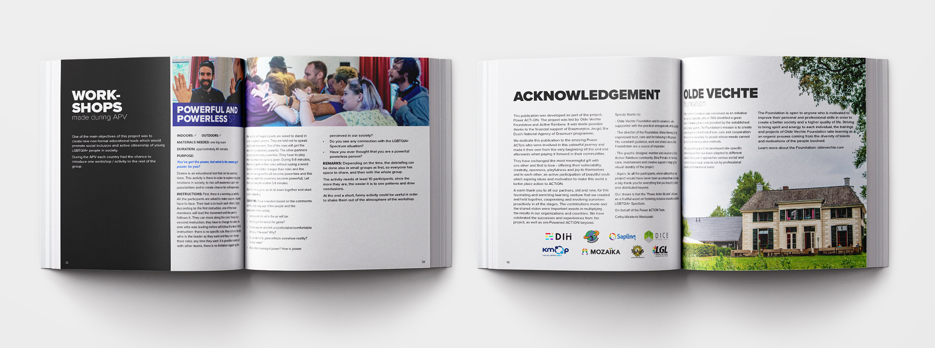 The “Power ACTi-ON Booklet” is one of the main educational tools developed during and after the Exchange with the same title. It took place in January 2018, at Olde Vechte Foundation in Ommen, the Netherlands. Project was organised and delivered by Active Rainbow.